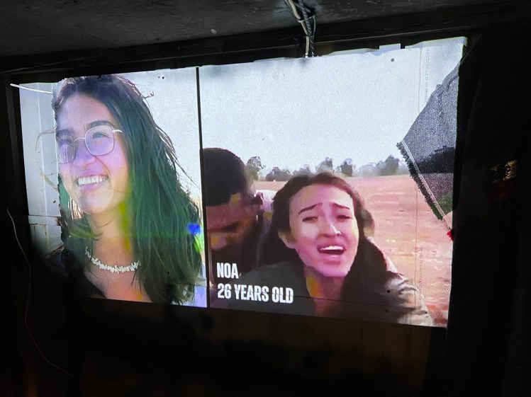 A light then reflects portraits of hostages still being held.