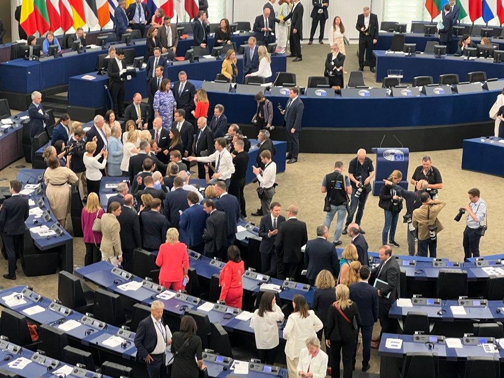 Strasbourg 18.07.2024 The European parliament endorsed Ursula von der Leyen as a head of the European Commission for the second term. After morning debate 401 MEP supported her candidacy by secret ballot.